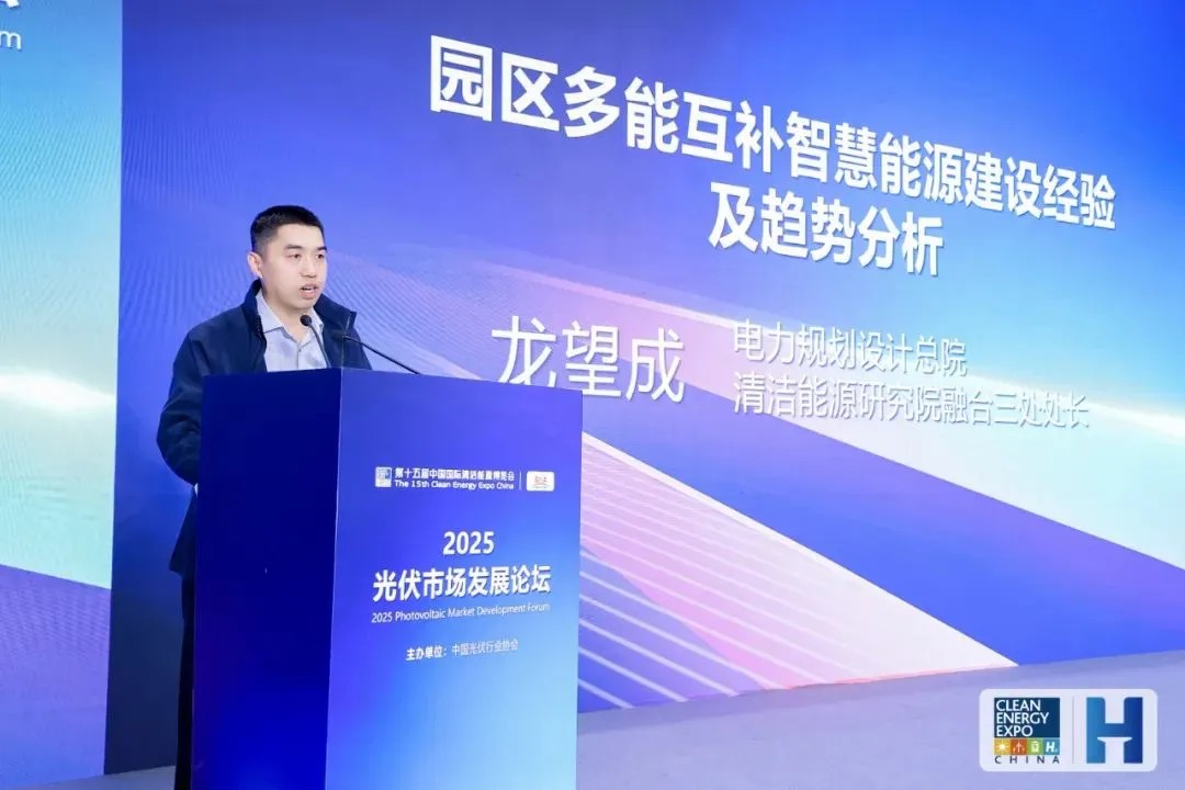 电力规划设计总院清洁能源研究院融合三处处长龙望成作“园区多能互补智慧能源建设经验及趋势分析”报告。他表示,工业园区绿色低碳发展已经成为大势所趋,绿色直连、零碳园区等政策持续发力。高比例绿能园区具有保供应、降成本、减碳排、增绿电(证)等突出优势,备受多方关注。